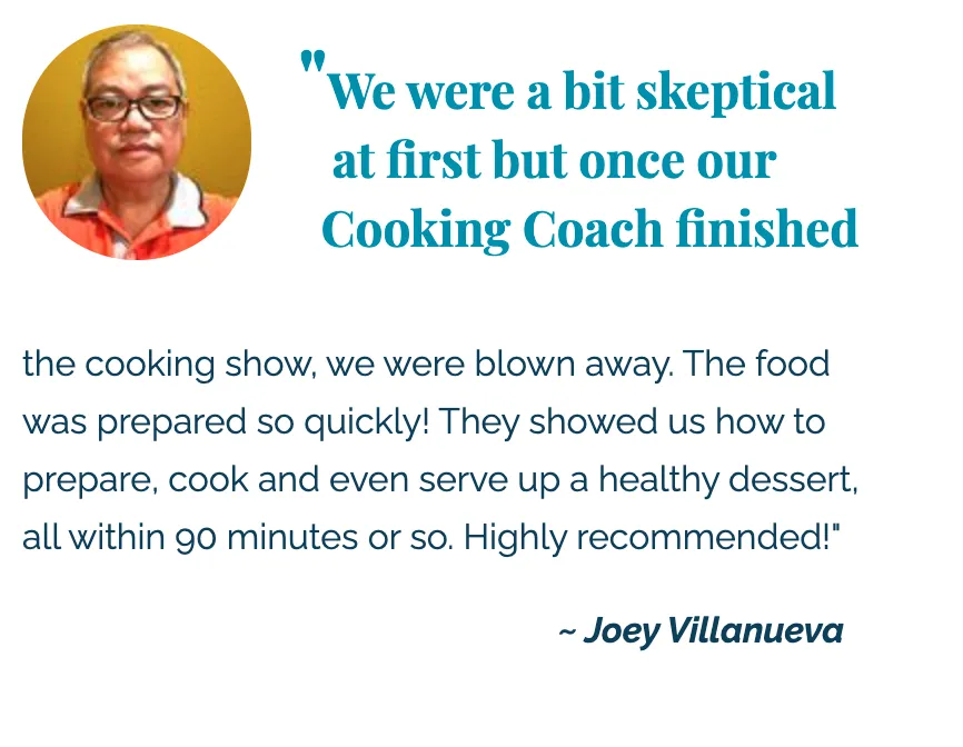 Our cooking coaches will cook you a flavor nutrition-packed meal and will give you valuable information on how to make healthy eating quick and easy. After the meal is cooked, we'll clean up your kitchen so it's as if we were never there